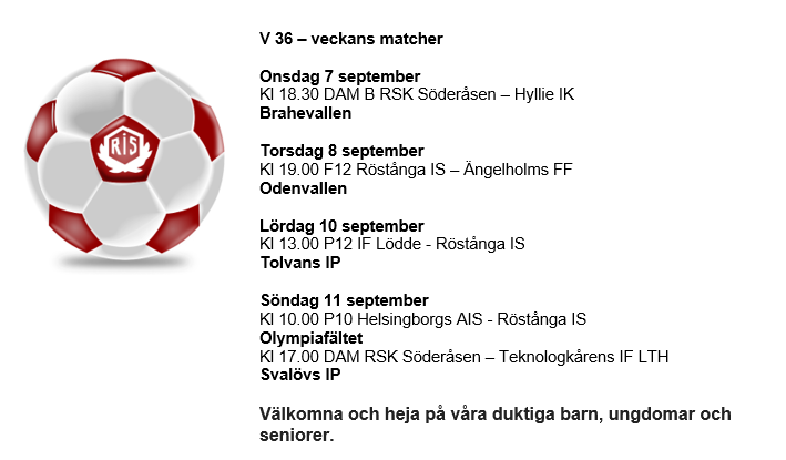 Välkomna att komma och heja på våra lag! Röstånga IS 5 sep 2022 0kommentarer