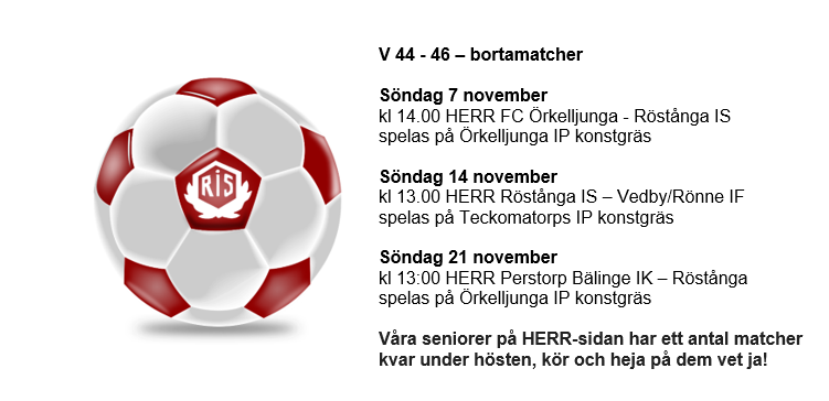 Heja på våra HERR-seniorer de matcher som är kvar under höstens serie! Röstånga IS 5 nov 2021 0kommentarer
